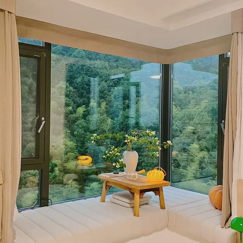 การออกแบบมีโครงสร้าง "กรอบอลูมิเนียมอัลลอยด์ + กระจกนิรภัย" พร้อมการประกอบเข้ามุม กระจายแรงกดอย่างเท่าเทียมกัน รับประกันความมั่นคงในขณะที่ยังคงรักษาเฟรมที่มีน้ำหนักเบา มีหน้าต่างบานเปิด บานพับอลูมิเนียมอัลลอยด์ภายนอกหรือแบบซ่อน เปิดได้มุม 90° และปิดผนึกอย่างแน่นหนาเมื่อปิด การเลื่อน หน้าต่างมีระบบรางเงียบที่เลื่อนได้อย่างราบรื่น ลดเสียงรบกวน และประหยัดพื้นที่ เหมาะสำหรับขนาดเล็ก อพาร์ทเมน