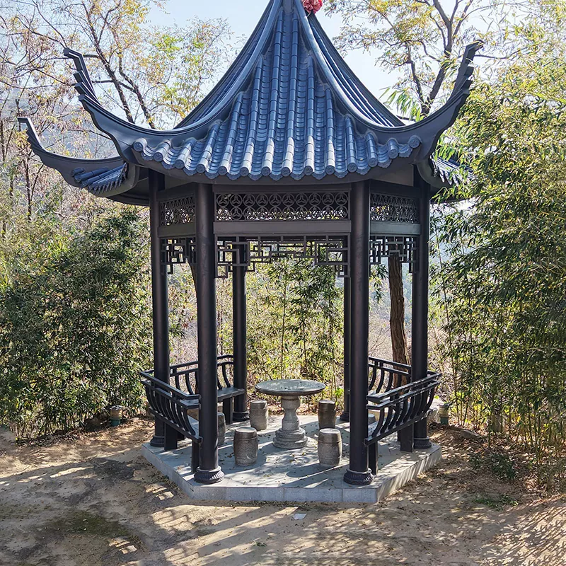 งานฝีมือร่องและเดือยแบบดั้งเดิม: ศาลาของเราสร้างขึ้นด้วยโครงสร้างร่องและเดือยเต็มรูปแบบ และบางส่วนเสริมด้วยส่วนประกอบ dougong เพื่อให้มั่นใจทั้งความมั่นคงของโครงสร้างและความถูกต้องทางวัฒนธรรม